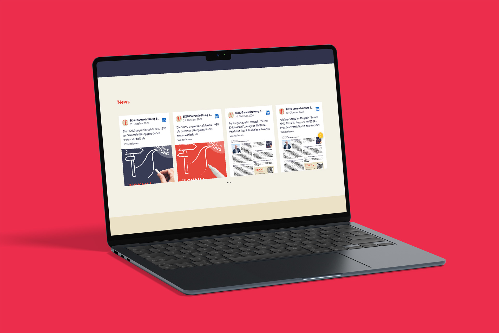 Damit die SKMU auch digital nicht im Dornröschenschlaf bleibt, sorgen regelmässige LinkedIn-Posts für Sichtbarkeit; auf der Website sind die Posts via Feed automatisch eingebunden.